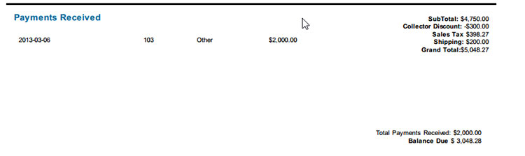 Important! be sure to click the "Save Discount" button immediately after entering the amount and before doing anything else on the invoice page. Failure to click on the "Save Discount" button will result in the discount being lost, and will give you an incorrect total.